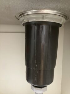 流し排水栓の隙間から漏れていたので一度取り外します
